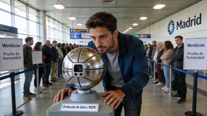 En enero de 2024, algo inusual llamó la atención en el intercambiador de la Avenida de América, en Madrid. Personas formaban colas frente a una esfera metálica del tamaño de una pelota de baloncesto, con una cámara que brillaba en su centro. Algunos se acercaban con curiosidad, otros con cierta desconfianza. Pero todos tenían el mismo objetivo acercar su rostro al orbe y escanear su iris a cambio de una recompensa. No en efectivo, sino en una moneda digital worldcoin. Lo que parecía una promoción futurista escondía una de las batallas más intensas sobre privacidad y control de datos biométricos en Europa.