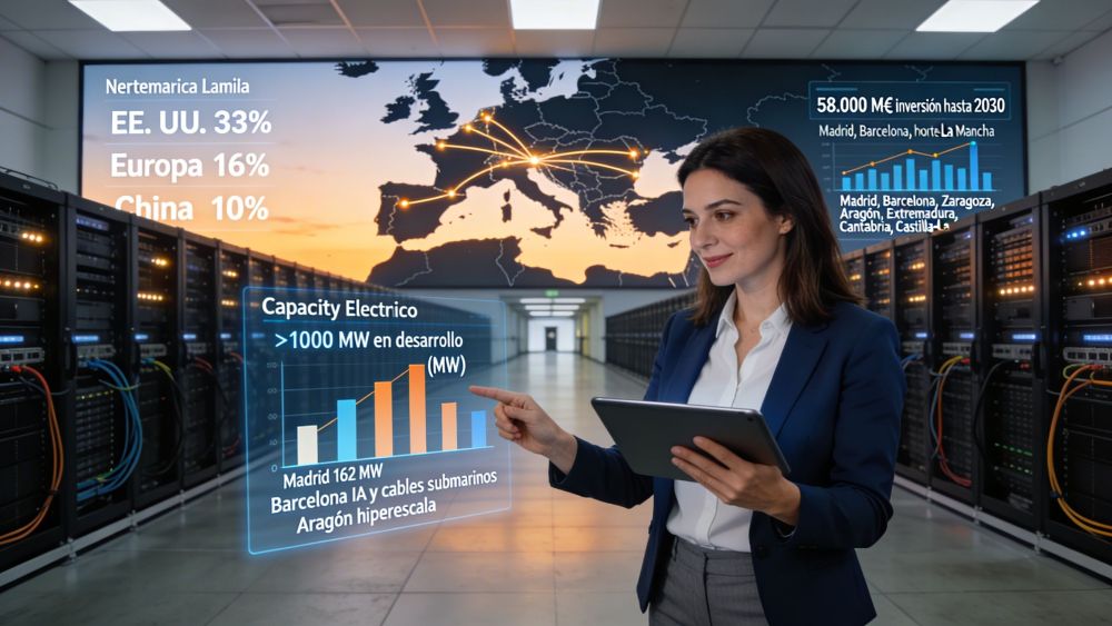 Los centros de datos son los cerebros físicos de internet. Allí residen los servidores que almacenan tus fotos, procesan cada búsquedca, alimentan las videoconferencias y hacen posible que una IA genere un texto como este. En el mundo hay más de 8.000, y Estados Unidos acapara el 33%. Europa tiene el 16%, China el 10%. España, aunque no lidera, está ganando peso. Y no es casualidad. El país se ha convertido en un imán para inversiones en infraestructura digital, atraído por su energía renovable, su ubicación geográfica y una red de fibra óptica cada vez más densa.