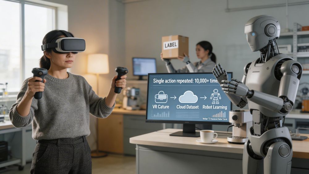 En una sala luminosa y ordenada del Valle Óptico de China, en Wuhan, un robot humanoide se inclina despacio, estira el brazo derecho y toma una taza de café de una encimera. No lo hace por instinto ni por programación rígida. Lo hace porque alguien, con gafas de realidad virtual puestas, ha repetido ese gesto decenas de miles de veces para enseñarle cómo debe hacerlo.